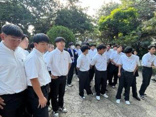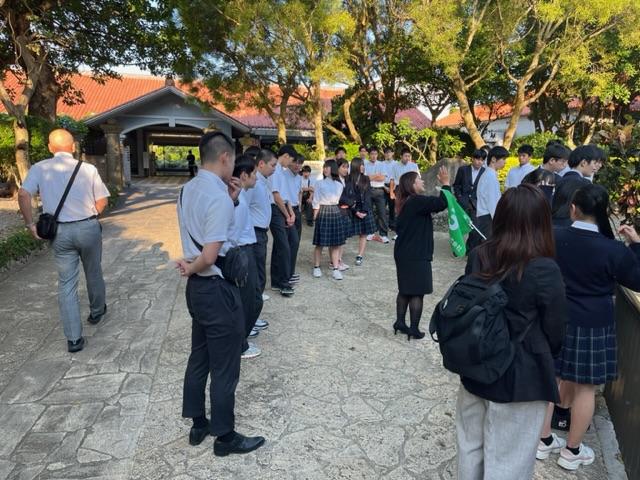 今日は、たくさんの説明をしてくれたガイドさんや色々な場所へ私たちを連れて行ってくれた運転手さん、そして民泊でお世話してくださる皆さんのおかげでとても有意義な旅行ができています。この修学旅行は本当にたくさんの人の支えによって成り立っています。お家で待っている保護者の皆様にも感謝です。あと2日、沖縄の生活や文化を学びながらも、仲間と協力し合い、親交を深め、充実した時間を過ごしていきたいと思います。