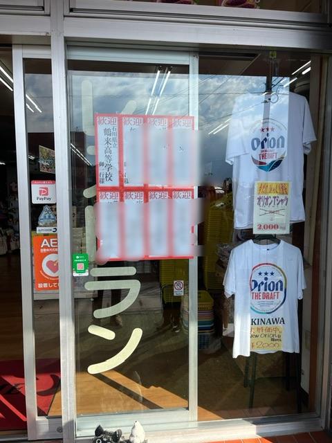 ひめゆり祈念資料館の横にあるお土産屋さんには【歓迎鶴来高等学校】が貼ってありました。