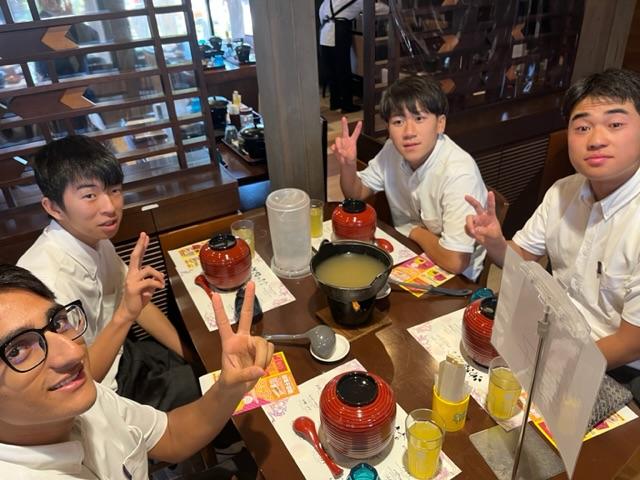 みんなを笑顔にしてくれました‼︎そして、生徒たちがみんな笑顔になってくれたから良い雰囲気で最後の夜ご飯を楽しく終えることができました。一人ひとりの頑張りや思いやり、優しさが、旅の雰囲気を作りあげているということを感じました。帰るまでが修学旅行ということですので、あと1日、笑顔で終わることを目標にして一人ひとりのすべきことを果たしていきましょう‼︎