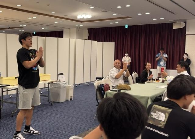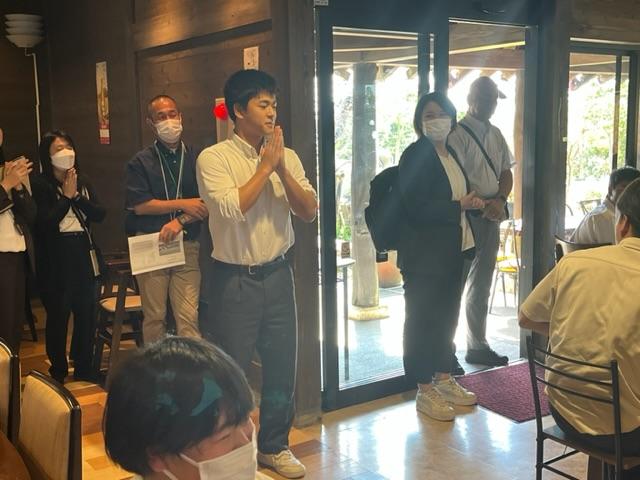 最後に、今回合掌は24ホーム石川さんが行いました。合掌前に一発ギャグをすることが恒例になりつつあるのか、やはりここでもギャグを披露してくれました。