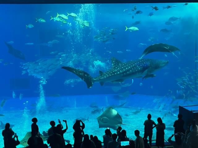 午後は美ら海水族館へ行きました。観光シーズンということもあり、どこを見渡しても人だらけでした。大型バスもたくさん並んでいました。