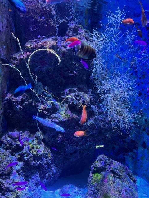 水族館はとても大きな水槽があったり、カラフルなお魚がたくさんでした。水族館が建っている場所も魅力的でした。