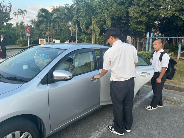 民泊体験を終えた生徒たちは、車に乗ってネイチャーみらい館に帰ってきました。