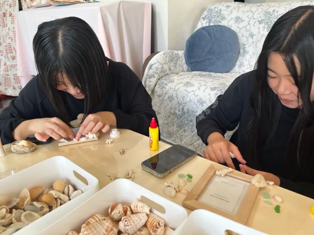 フォトフレームづくりをしている家もありました。朝早くにビーチに出かけ、朝陽を見ることができたそうです。生徒が撮影した写真は、ビーチと太陽の感じが素敵な写真でした。