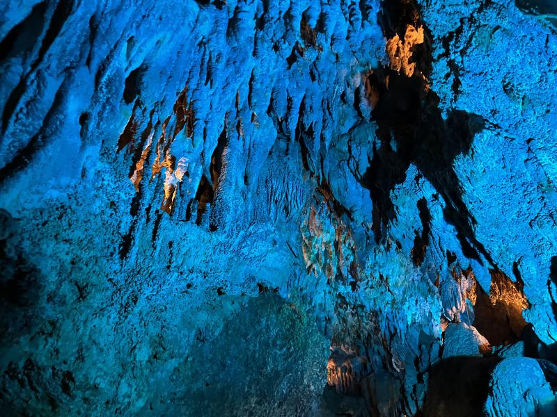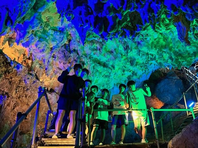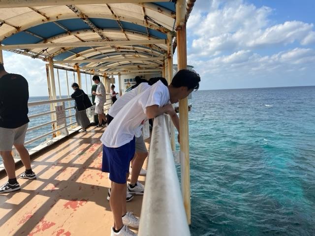 このコースでは海中展望台から、海の中を除く体験と鍾乳洞の散策をしてきました。波が荒れ船が欠航したため、船に乗って海の中を覗く体験ができませんでした。その穴埋めとして、最後にアメリカンビレッジへ行ってきました。