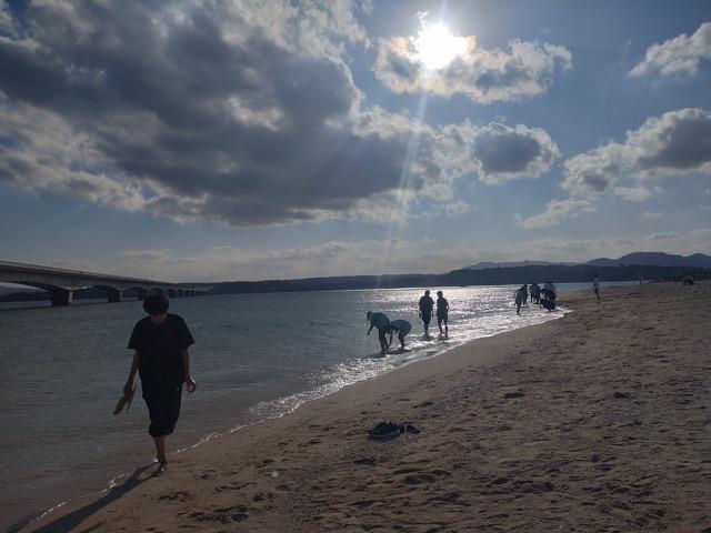 最後は、海で遊んでいるということを聞きましたので向かいました。そこには2つのグループがいました。海で貝殻を探したり、海ではしゃぐ姿を見ることができました。