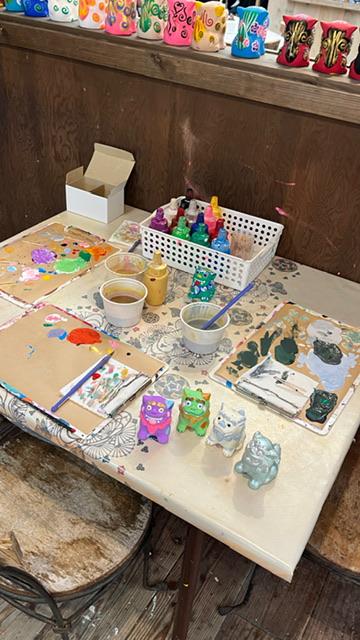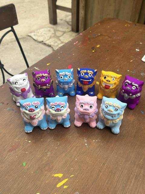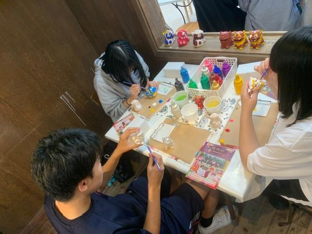 琉球の体験をした後、オリジナルのシーサーを作成しました。それぞれが一生懸命塗って作り上げた、最高傑作が登場してきます‼︎