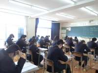 今日は大学入試センター試験が行われていますが、1、2年生は全員外部模試を受験しました。全国の高校生の中での自分の学力が客観的にわかるので、今後の進路についての参考資料となります。それぞれの教室で一生懸命に取り組んでいました。