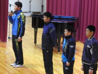今日は7限目のLHの時間にインターハイに出場が決まったスキー部の壮行式がありました。校長先生からの激励の挨拶の後、柔道部の応援団による校歌、応援歌、三三七拍子、応援ソングの披露が行われました。選手代表挨拶ではアルペンとクロスカントリーからそれぞれ一人ずつ全国での上位を目指して戦ってくるという力強い挨拶がありました。ぜひ全国に鶴来高校の名を連ねてきてください。