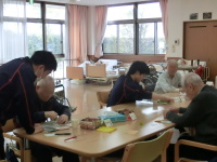 今日は今年度最後となる施設実習に行ってきました。先月丸1日お世話になったばかりなので、覚えていてくださった利用者の方もいて、終始和やかな雰囲気の中で生徒が用意した工作を楽しむことができました。今回は初めて生徒が主体となって利用者の方にレクチャーしながら一緒に絵馬を作りました。