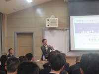 発表者以外の生徒も、司会、来賓の接待、評価票の準備、照明、ビデオ・写真撮影、発表者の補助など、事前にリハーサルを行ってから本番に臨み、運営者として主体的に活動しました。また、金沢星稜大学の西村貴之先生を講師としてお招きし、発表に対する講評と「スポーツまちづくり」と題してご講演いただきました。部活動中心で「する」スポーツばかりであった高校生に、「みる」スポーツ、「支える」スポーツなど、スポーツのもっている可能性についてご自身の活動を題材にお話しいただき、生徒も新たな視点でスポーツをみることができたと思います。今年の発表会も充実した内容で、3年間の集大成にふさわしいものになりました。34Hのみなさん、お疲れさまでした。