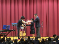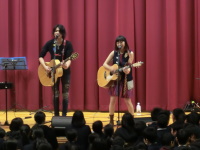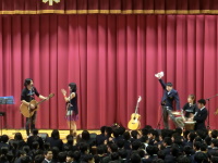 同窓会やPTAの協力を得て今年で3年目になる鶴高応援ライブが開催されました。昨年に引き続き、ノンシャンさんとかわべれんさんの2人が来校し、生徒からのリクエスト曲も含みながら1時間の熱いステージを繰り広げてくれました。アンコールでは生徒も一緒に歌って盛り上がりました。お忙しい中、鶴高生のために素敵なライブをありがとうございました。