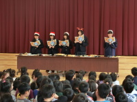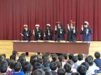 今年度最後となった児童館実習ですが、クリスマスソングを中心に6曲演奏してきました。今回は特にトーンチャイム(ハンドベルに似た楽器)は歌なしで生徒たちのチームワークだけを頼りに仕上げ、今までで一番完成度が高かったのではないかと思います。見ていてくれた小さい子に途中スズを貸して一緒に演奏してもらうなど充実したミニコンサートとなりました。ご覧になってくださった方々や児童館の職員の皆様、本当にありがとうございました。