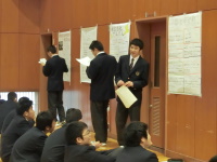 今日の午後、1年生のあじさいタイム(総合的な探究の時間)で10月に行った就業体験のポスターセッションが行われました。事業所ごとに工夫を凝らしてポスターを作成し、それを元に聴きに来ている生徒たちの前で、全員が自分が就業体験で学んだことをプレゼンします。始めの方は緊張していましたが、後半はほとんどの生徒が堂々と発表していました。