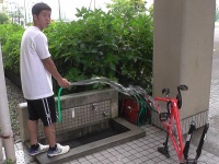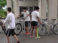 マウンテンバイク実習1回目です。あいにくの天気だったので今回はバイクの点検と掃除を行いました。中には1年ぶりぐらいのバイクもあり砂だらけのバイクをきれいにして空気を入れ点検しました。来週は河川敷あたりで実習をしたいと思います。