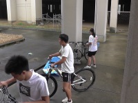 2019年9月11日 17時27分 マウンテンバイク実習1回目です。あいにくの天気だったので今回はバイクの点検と掃除を行いました。中には1年ぶりぐらいのバイクもあり砂だらけのバイクをきれいにして空気を入れ点検しました。来週は河川敷あたりで実習をしたいと思います。