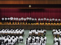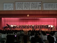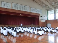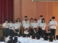 今日から2学期が始まりました。新しいALTのダグラスさんの新任式や、夏休み中に行われた各種大会の表彰伝達の後、2学期始業式が行われました。はじめに校歌と舟岡古調を元気よく歌い、校長先生からは夏休みに特に頑張っていた部活動や、ライオンズクラブからの寄贈をはじめ、たくさんの人に応援されていることが紹介されました。生徒の皆さんはそのことを忘れずに、これからもしっかり頑張ってほしいと思います。
