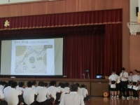 今日は7限目のLHで全校生徒対象に手取川歩行事前学習が行われました。はじめに夏休み中に白山ジオパークへフィールドワークに出かけた21Hによる概要説明がありました。どの生徒も堂々とはっきり見所について説明してくれました。その後は危険生物や当日の諸注意、昨年度の様子などについてのお話がありました。当日は体調を整えて全員が完歩できるようにみんなで励まし合いながら頑張って歩きましょう!