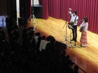 今日は午後から第一体育館で「鶴高応援ライブ2018」が開催されました。今回は同窓会からの紹介で、シンガーソングライターのかわべれんさんとnonchamp(ノンシャン)さんを招いて行われ、二人の熱く、温かいメッセージのこもった歌声で、生徒も一緒に盛り上がっていました。高校生という時期だからこそ響くものもたくさんあったと思います。アンコールでは何人かステージ上に乗って一緒に楽しむことができました。出演したお二人はもちろん、スタッフの方々も、お忙しい中、寒い中、鶴来高校までお越しいただき、楽しい時間を本当にありがとうございました。