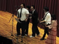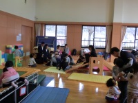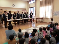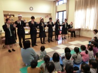 今日は今年度最後となる児童館実習へ行ってきました。近くの保育園の5歳児さんたちが遊びに来ていたので終始大盛り上がり。子どもたちも一緒に歌ったり楽器を鳴らしたり時折つっこみを入れられたりと、とても楽しい演奏会となりました。演奏会後には少しだけ一緒に遊ばせてもらいましたが、高校生のお兄さんお姉さんたちは大人気でした。