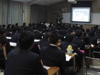 6限あじさいの授業にて2学年の生徒を対象に進路講演会が行われました。講師にはベネッセコーポレーションの中野氏をお招きし、今後の進路をどのように考えていけばよいのか、自己分析なども交えて生徒にもわかりやすく講演をしていただきました。