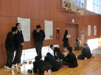 2018年12月13日 14時36分 今日は5、6限目に1年生で就業体験のポスターセッションが行われました。10月の就業体験が終わって以降、事業所別に分かれて発表用のポスターを制作し、本日発表の日を迎えました。一人1~2回発表し、残り2~3回は他のポスターの発表を聴くという形式で、回が進むにつれて慣れた様子で発表している姿が伺えました。