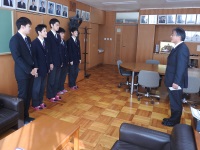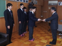 今日は校長室にて新人大会で団体優勝して北信越大会への出場が決まった弓道部に激励費が支給されました。学校長からの激励の挨拶の後、個人でも4位に入賞して北信越大会の出場権を得た上田倖平選手が激励費を受け取りました。弓道部は12月にも全国選抜大会へ出場することとなっています。健闘を祈ります!