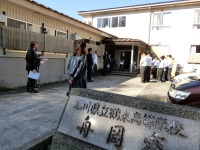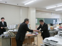 今朝、日本教育公務員弘済会石川支部長の寺西さんから、学校長に学校教育活動助成の贈呈がありました。本校が応募した「図書館講座等による読書活動の充実に向けて」という内容が認められたもので、数ある応募団体の中から選考されました。この助成金は今後ますます本校の読書活動が充実していくように有効に活用される予定です。