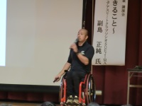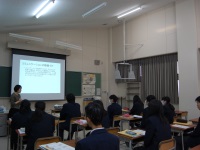 今日は白山市障害福祉課にご協力いただいて、社会福祉法人ひびき「つながりの家」からスタッフと利用者の方にお越しいただき、障害福祉サービス事業所での仕事の様子やグループホーム、自宅での生活の様子をそれぞれスタッフと利用者の方双方からお話していただきました。生徒もいつも以上に集中して話を聞いているように見えました。これを機会に障害者福祉に対する理解が少しでも深まることを願っています。本日はお忙しい中ご来校いただいた白山市の職員の方、つながりの家の関係者の皆様、本当にありがとうございました。