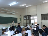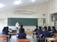 今日は石川県女性相談支援センターの職員の方を招いて、デートDVを中心としたドメスティックバイオレンスについてお話しいただきました。まだまだ男尊女卑がはびこる日本社会の現実や、お互いを認め合い尊重し合うことの大切さなどをわかりやすく紹介してくださいました。生徒の人権問題に対する正しい理解や認識も深まったと思います。