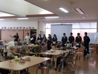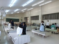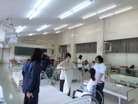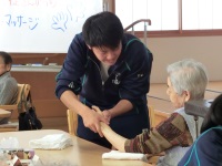 今回の施設実習では、1学期から練習を重ねてきたハンドケア(ハンドマッサージ)を利用者の方に体験してもらいました。1人につき2~3名程度の利用者の方の両手をゆっくり丁寧にマッサージしてきました。普段生徒同士で練習しているので、はじめは緊張した様子でしたが、次第に会話も弾むようになり、生徒、お年寄り共に笑顔が見られました。だいぶコミュケーションも取れるようになってきたので、ぜひこの経験を生かして来月の1日実習につなげていってほしいと思います。