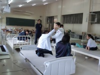 今日の「介護福祉基礎」の授業では南ケアセンターの中島さんをお迎えして着脱解除について学習しました。はじめに「着患脱健」という患っているから着せて、健康な方から脱がすという基本的な動作を学び、実際にやってみました。いきなり麻痺の方から脱がせる生徒もいて、頭でわかっているのと実際にやってみるのとでは勝手が違うことがよくわかりました。直接介護技術を教えていただける授業も残すところ2回となりました。12月の実習に向けてより一層頑張ります。