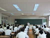 今日は3年生の就職希望者対象に就職激励会が行われました。学校長や学年主任からの激励の言葉の後、進路課の就職担当者から諸注意がありました。連休明けからはいよいよ就職試験が順次始まります。今までやってきたことが最大限に発揮できるよう、最後までやれることをやりきって頑張りましょう。