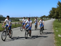 3年スポ科のスポーツⅤの授業において、第3回目のマウンテンバイク実習を行いました。今回は、手取川河川敷の水辺公園付近まで少し長めのサイクリングをしました。天候に恵まれ絶好のサイクリング日和でしたが、少し風が強く、帰り道は向かい風となり、生徒たちは大変そうでした。しかし、仲間との会話を楽しみながら最後まで活動することができました。