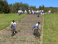 本日、気持ちの良い秋晴れの下、2回目となるマウンテンバイク実習を行いました。絶好のサイクリング日和で、今回は学校の外へ出て河川敷のサイクリングロードを走りました。目的地に着いた後は、学校より急な傾斜の階段を下る練習をしました。普段乗りなれていないマウンテンバイクでバランスを取るのは慣れるまで大変そうでしたが、最後には全員上手に下ることができていました。