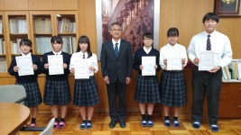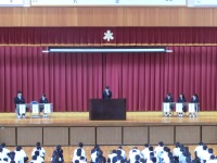 放課後、校長室にて後期生徒会役員任命式が行われました。校長先生から「よく勇気を出して立候補してくれました。『今の自分を変えたい』という思いで決心した人もいるようですね。後期は文集『連峰』の作成や球技大会などで活躍してください」と激励の言葉をいただきました。