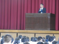 10月初日となった今日、朝学習の時間に10月の校長訓話が行われました。今回の主な内容は、全国的に有名な方から始まり学務員さんの献身的な仕事ぶりや各部を中心としたボランティア活動についてのお話でした。人から感謝されることで自分の成長にもつながるボランティアはぜひ大切にしていきたい活動です。