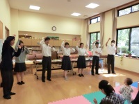 2018年10月2日 12時00分 今年度3回目となる児童館実習へ行ってきました。今回は0~1歳児と保護者の方が3組というこじんまりとした演奏会になりましたが、生徒全員が伴奏とMCを1回ずつ務め、歌や踊りを元気に披露することができました。もちろん多少のミスはいくつもありましたが、大きな流れは損なわれることなく、小さい子どもたちにも喜んでもらえる内容でした。演奏後は子どもたちをあやしたり、抱っこさせてもらったりして、乳幼児への理解を深めていました。