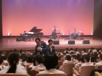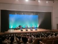 本日午後、高文連文化教室が白山市鶴来総合文化会館クレインで行われ、jammin’ Zeb(ジャミンゼブ)というジャズ・コーラスをベースに、あらゆるジャンルの楽曲を爽やかに歌いこなす、スーパー・ヴォーカル・グループの演奏を聴くことができました。生徒が聴いたことのあるような曲もたくさんあり、さわやかなハーモニーを楽しむことができたと思います。