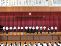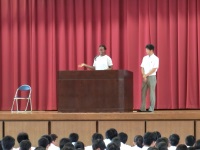 今日は1学期最後の日となりました。大掃除の後、各種大会の表彰伝達式が行われ、その後に終業式、退任式と続きました。終業式では校歌に続いて舟岡古調を歌った後、校長先生からやってしまった後悔は小さくなっていくがやらなかった後悔は日に日に大きくなっていくというお話があり、充実した夏休みを過ごせるように生徒へ向けて叱咤激励が送られました。退任式では3年間本校でALTとして勤務してくださったデニース先生が英語でお別れの挨拶をしてくれました。ジャマイカで皆さんと会えることを楽しみにしているそうです。