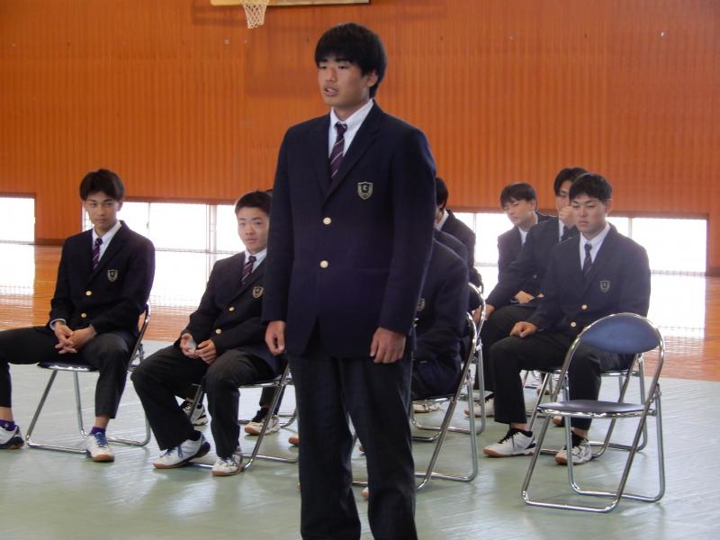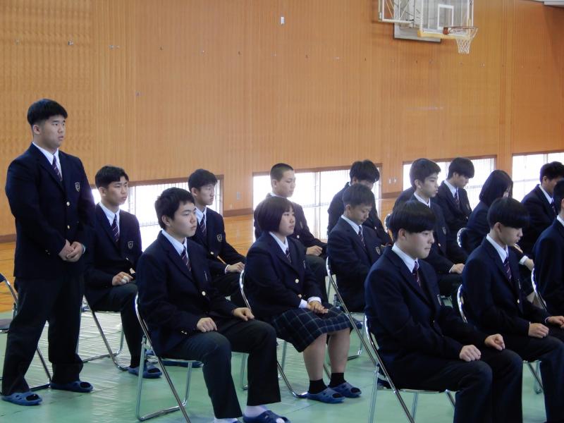 スポーツ科学コースには新しく27名の1年生が入りました。オリエンテーションを終え、初めての行事対面式が立派に行われました。1年生はこれからの目標や頑張りたいことを、胸張って、堂々と先輩方に伝えました。