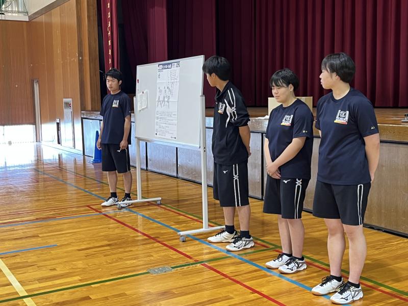 2年生になるとスポーツ科学コースの生徒は、全校生徒の前でスポーツテストの説明や誘導、計測を行います。24ホームの生徒が中心となって学校を動かす初めての経験です。