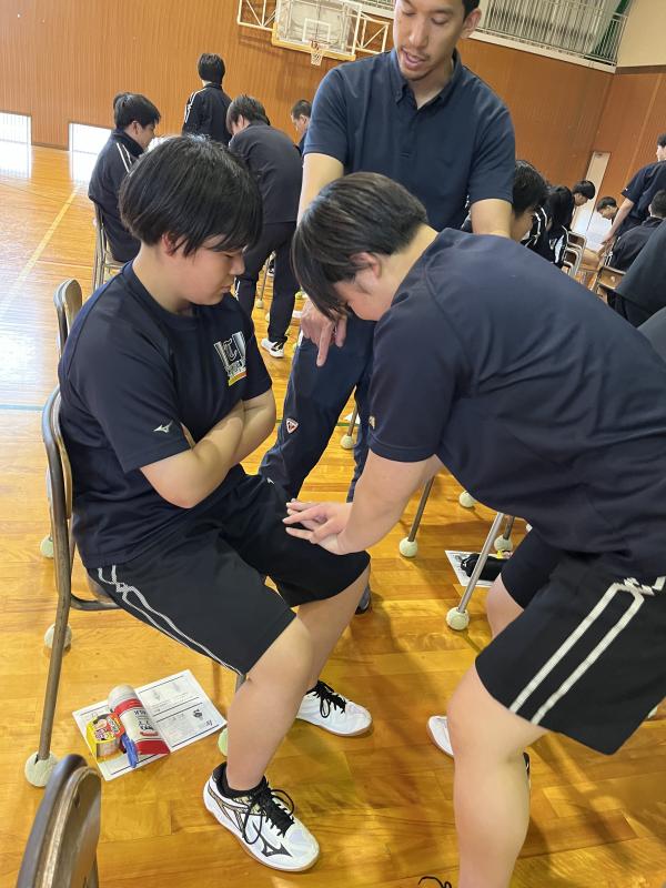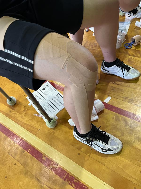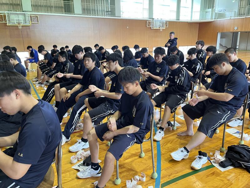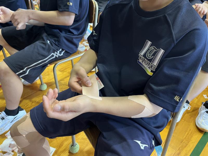 1年生から3年生までそれぞれが集中してテーピングの巻き方を理解しようと取り組み、横部さんの手本と見比べても同じように巻くことができていました。センスを感じますね。