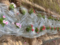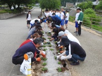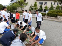 今日は白山市フラワーデーということで、学校前の花壇に市からもらった花の苗を植えました。朝の8時からラグビー部、柔道部、ジャズバンド部、生徒会執行部、ボランティア委員のメンバーに加え、PTAの保護者の方々の協力の下、作業をしました。心配された雨も降ることなく、40分程度で作業が終了しました。これからは生徒の皆さんで少しでも花が長持ちするように、毎日欠かさずに水遣りをしましょう。