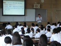 今日は2年生になってからの文理ビジネスコース選択の概要についての説明会がありました。はじめに進路課の先生より卒業後の進路と絡めた選択の重要性についての話があり、その後、教務課の先生より、ビジネスコース、理系コース、文系コースの主な内容や選択科目についての話がありました。木曜日には各科目について詳細な説明があります。入学して2か月しか経っていないのであまりピンと来ない人もいるかもしれませんが、進路実現に向けた準備は早いに越したことはありません。自分の適性をよく考えて、後悔のない選択をしてください。
