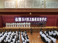 今日は6限後に表彰伝達式と北信越大会の壮行式が行われました。表彰伝達式では総体で400mHで3位に入賞した陸上部や団体準優勝及び個人1~3位の柔道部、中谷賞で準優勝のラグビー部、総文で佳作に入賞した書道部が表彰伝達されました。次に行われた壮行式では表彰を受け北信越大会に駒を進めた陸上部、柔道部、ラグビー部が野球部を応援リーダーとする全校生徒から応援を受けました。学校長や生徒会長からの激励の言葉もありました。各部代表からは北信越でも入賞できるように頑張るといった意気込みが語られました。