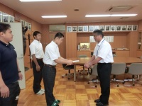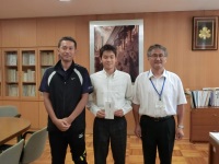 金曜日から北信越大会に出場するラグビー部、陸上部、柔道部に校長室でそれぞれ激励費が送られました。ラグビー部はブロック優勝を目指し、陸上部はインターハイ出場をかけて、柔道部は総体の雪辱を果たすべく、どの部も気合のこもった挨拶を述べていました。学校長からもそれぞれに激励の言葉が送られました。鶴高魂を胸に全力で戦ってきてください。