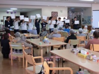 今日は今年度初めてとなる施設実習に行ってきました。実習先はいつもお世話になっているあじさいの郷デイサービスです。たくさんのお年寄りの方が利用されており、始めは緊張気味の生徒たちでしたが、利用者の方々からいろいろ話しかけてもらって徐々に打ち解けた雰囲気になってきました。その後、一緒にゲームをしたり歌ったりして、終始和やかに実習を終えることができました。早くも次はいつ行けるのかと次回を楽しみにしている生徒たちでした。