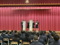 今日は出張で不在の校長先生の代わりに、教頭先生からお話がありました。新学期から今まで、自分はどうであったかをたずねた後、凡事徹底の大切さを生徒に伝えていました。当たり前にやっていることをきちんとこなすこと、挨拶をする、提出物を出すなど当然のことをきちんとやる、とても大切なことです。ちょうど本日から1学期中間考査1週間前、新学年になって初めての試験になりますが、授業で学んだことをしっかり復習して臨みましょう。