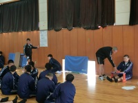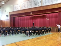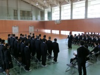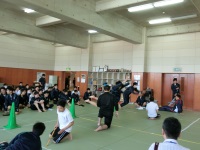 昨日から1泊2日で宿泊オリエンテーションを行っていたスポーツ科学コースの1年生が学校に戻り、2、3年スポ科の生徒や体育科の教員と対面式を行いました。学校長挨拶の後、3年生のクラス会長から歓迎の言葉があり、その後、1年生が一人ずつ自己紹介を行いました。多くの1年生は緊張した様子で、中には練習通りの力が発揮できなかった生徒もいましたが、今後の成長を楽しみにしています。